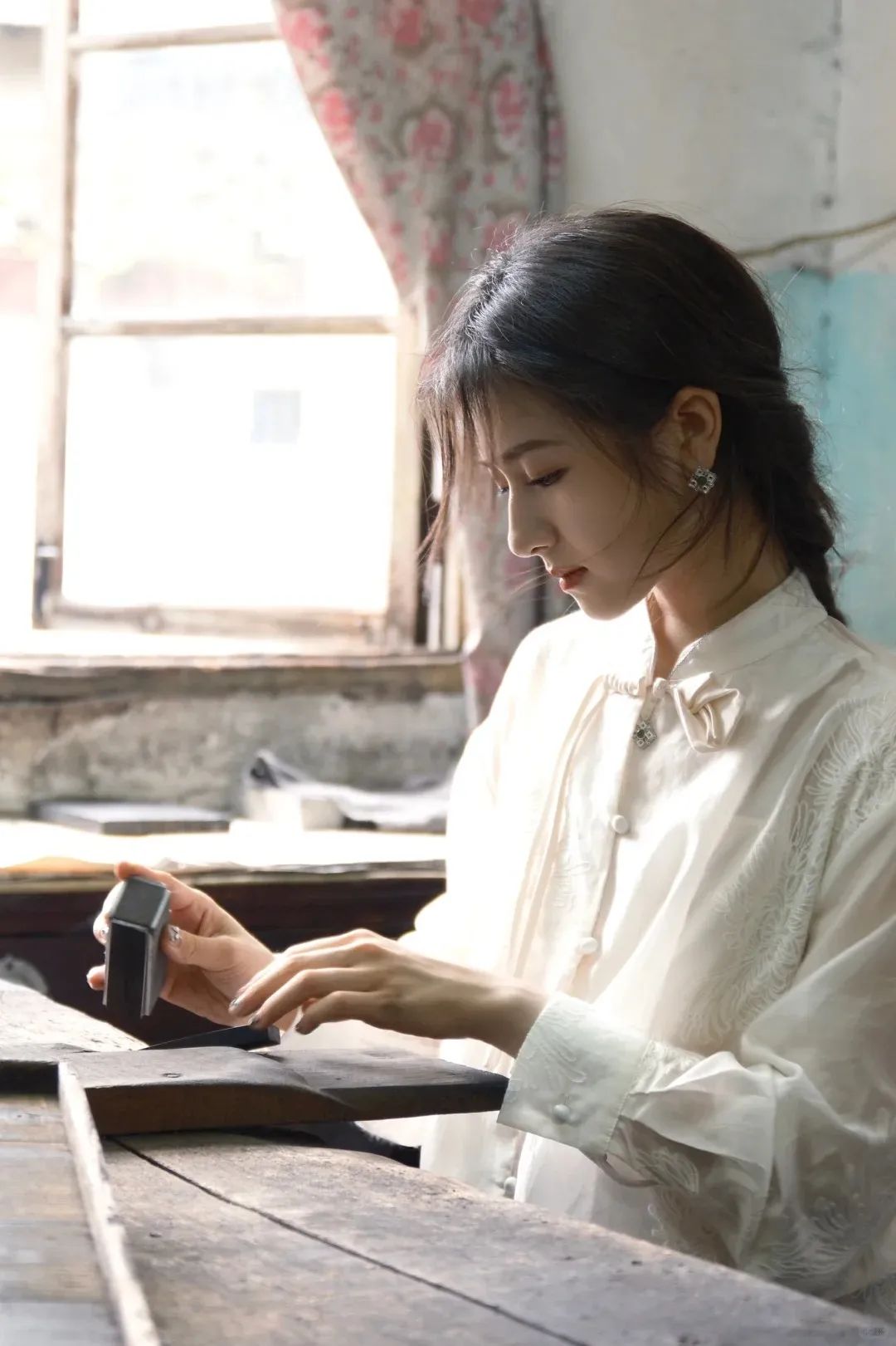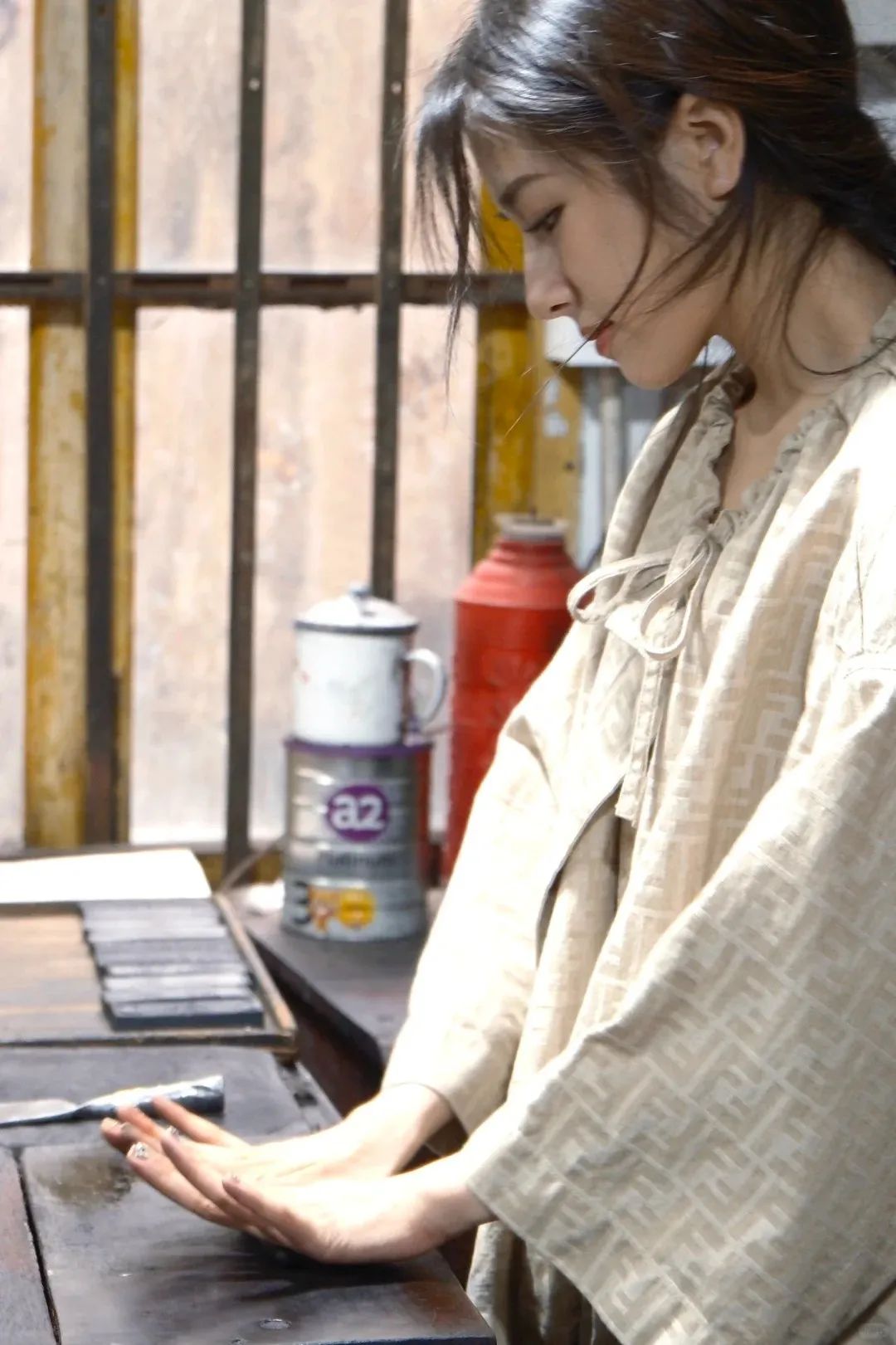 最近捷希源配资,刷到李兰迪的一组营业照,挺让人眼前一亮的。照片像是在一间没什么人的空教室里拍的,挺有氛围感。她安安静静地坐在那,面前摆着一些工具,正低着头专心制墨。她穿了一身白色的衣服,头发编成了辫子,整个画面看着就特别舒服、特别静。